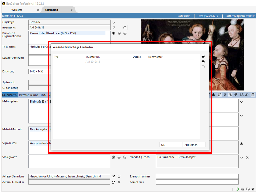Sie befinden sich hier: start » bcpro » de » collection » objdaten » objinventarnrs : fenster_wiederholfeldeintraege_bearbeiten.png