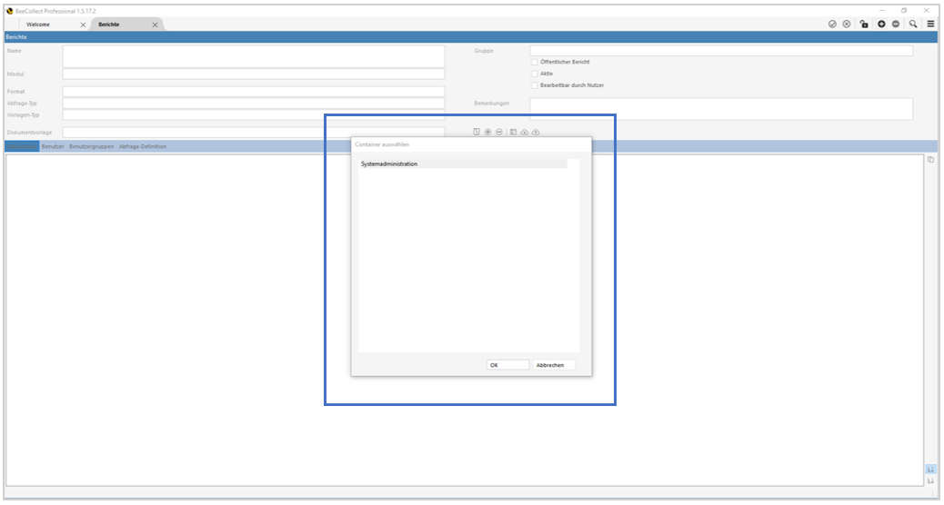 Sie befinden sich hier: start » docs » module » berichte » berichte_erstellen : fenster_container_auswaehlen_ber.png